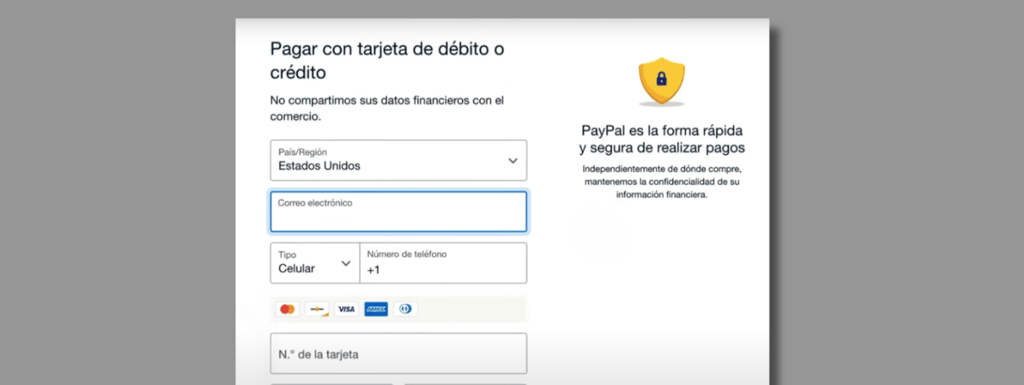 Al darle a la opción de Pagar con tarjeta de débito o crédito te saldrá esta ventana donde podras poner los datos de tu tarjeta